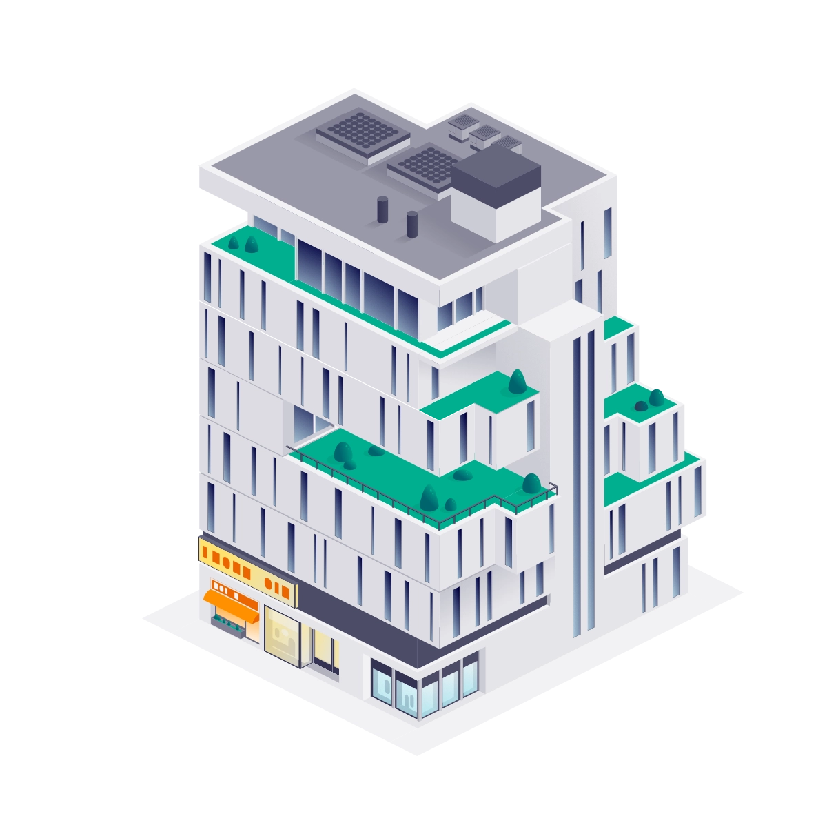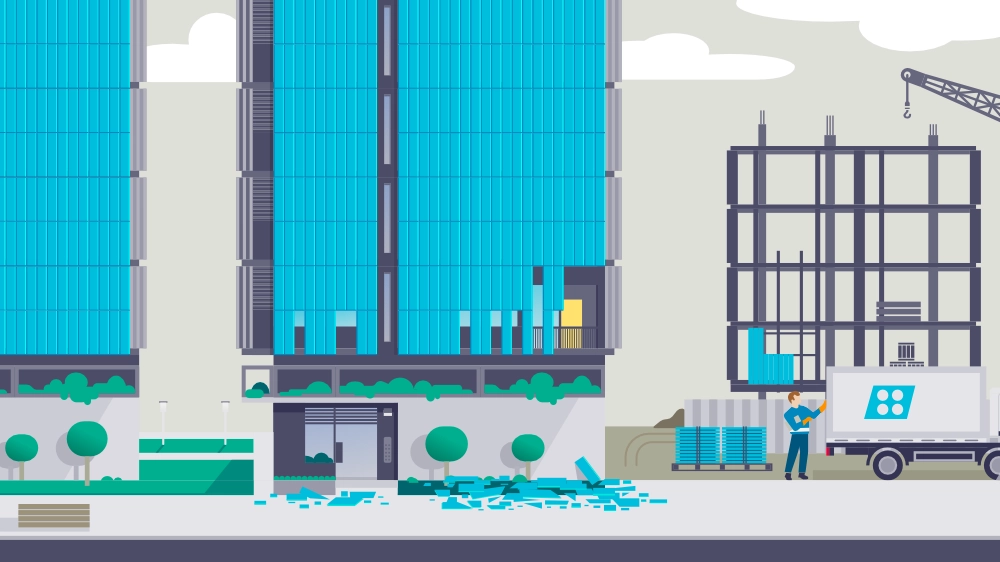 An entire city had to be created and brought to life with progressive levels of detail—from the full skyline down to individual rooms and objects within each building. The most effective strategy was a hybrid approach that combined custom generative tools with traditional vector illustration, balancing speed with style fidelity.