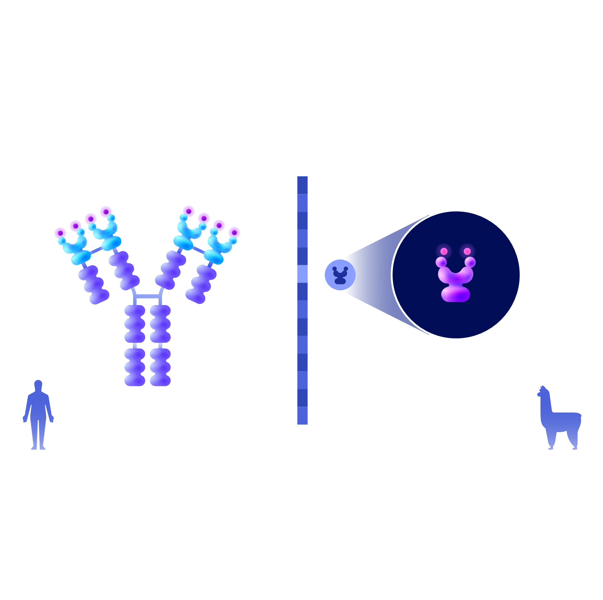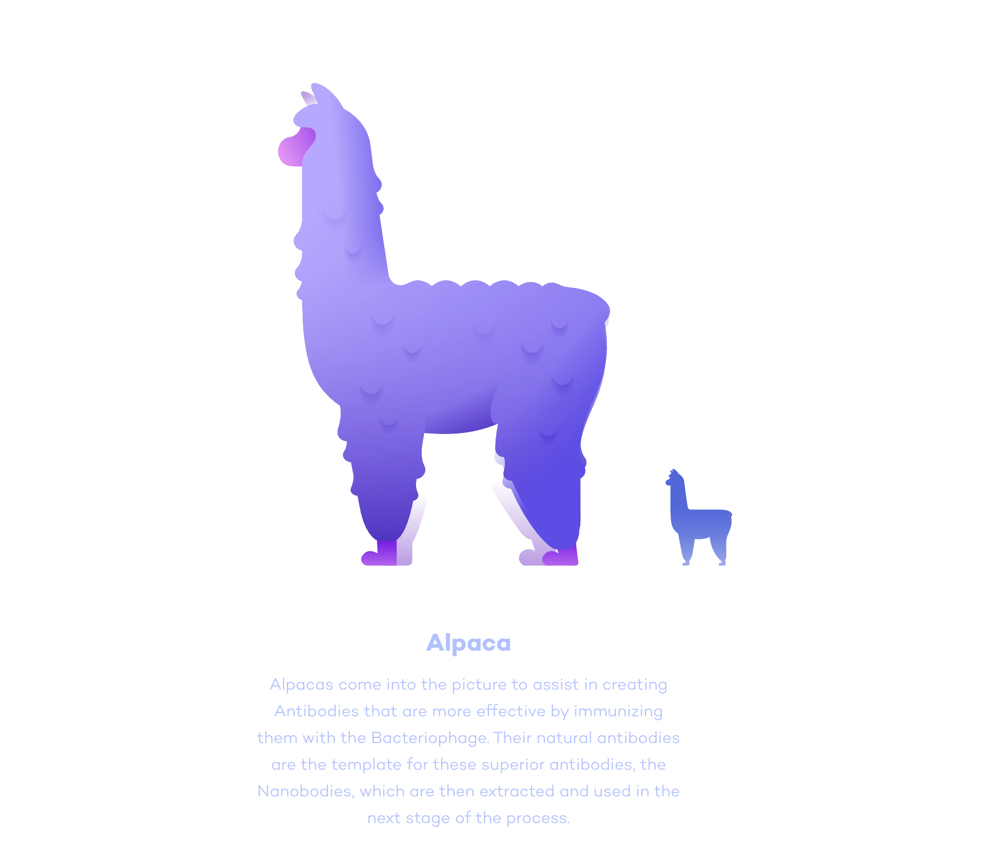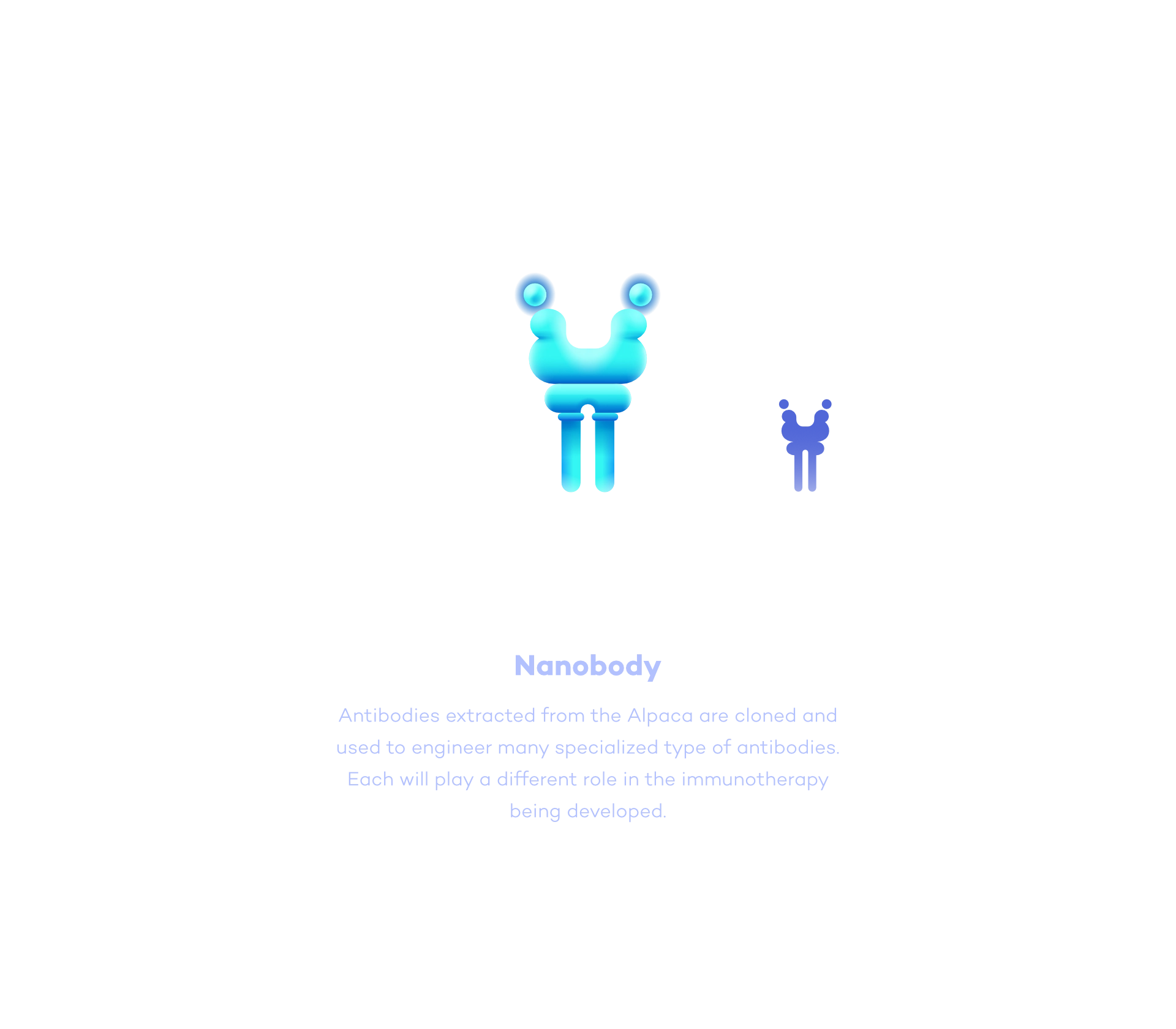 A library of modular illustration assets covering key scientific concepts from T cell activation to nanobody structures, ready for use across internal marketing and communication materials by the design team.