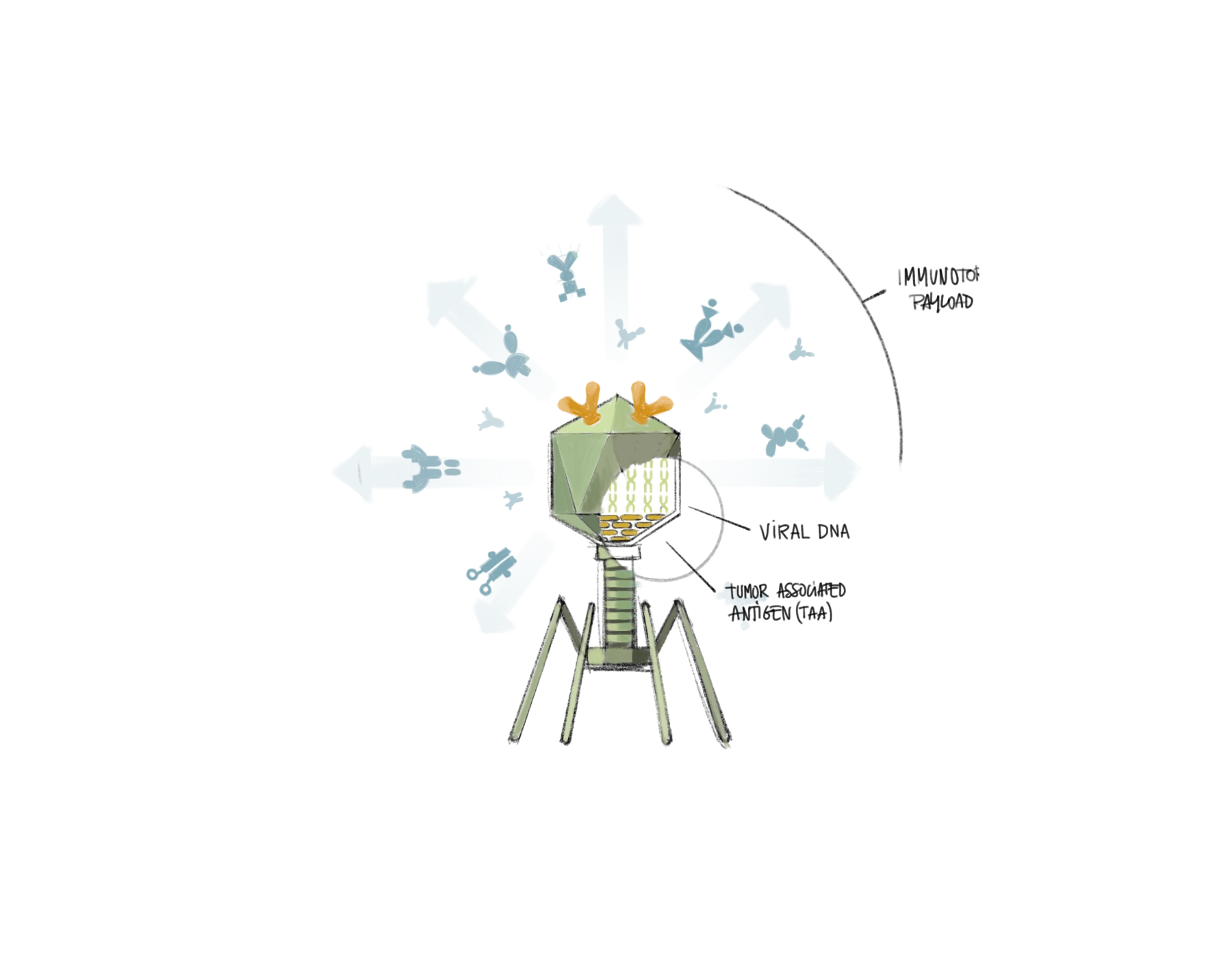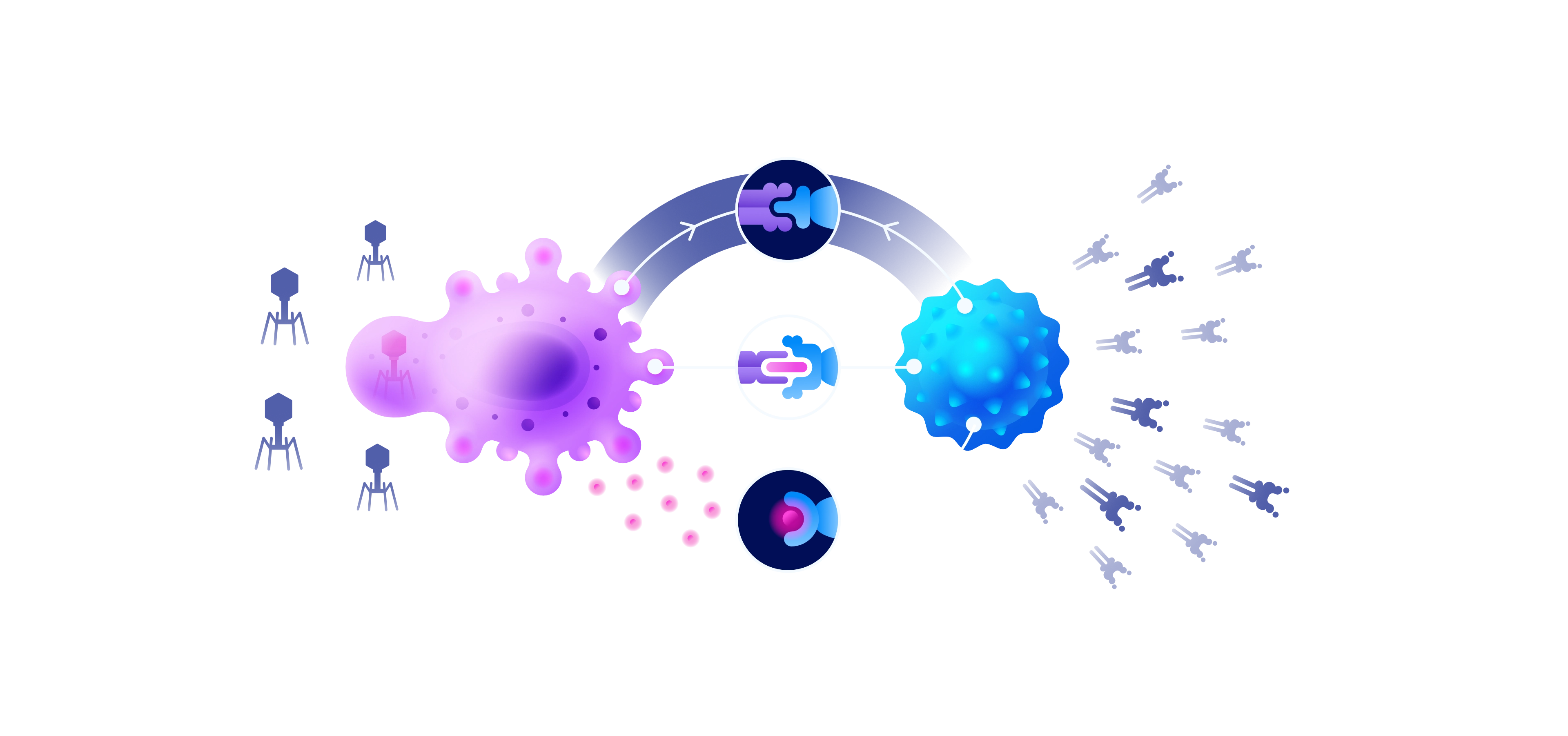 Sensei Bio develops immunotherapies that harness the body's defences against cancer. I designed a set of illustrations and diagrams to help them communicate their research: from molecular mechanisms to cellular interactions.