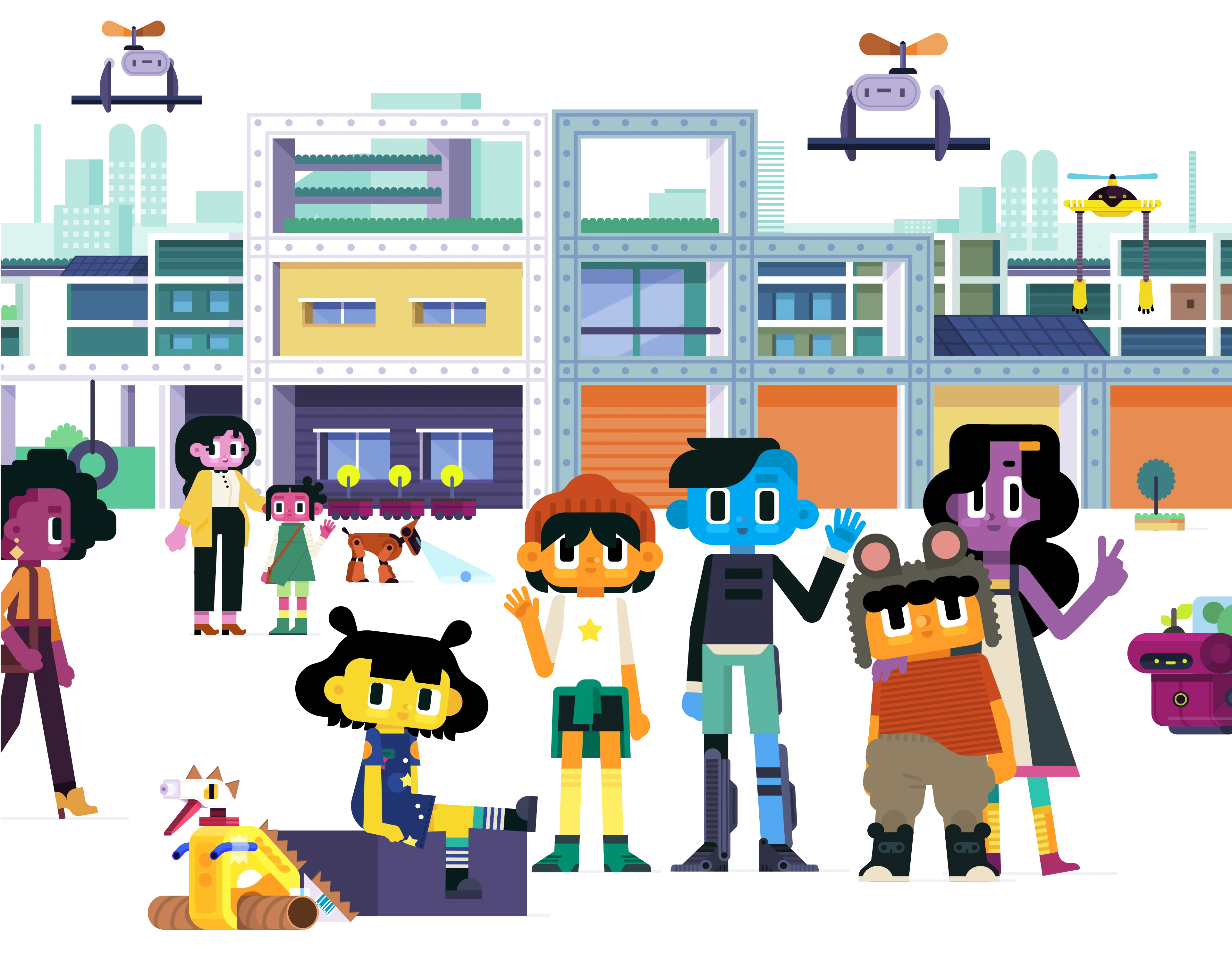 At the heart of Ubbu's world is a cast of five friends, each representing a STEAM discipline. Every character has a distinct personality designed to resonate with different kids, so there's always someone to connect with. More than mascots, they're companions on the coding journey—guiding players through tile-based adventures, visual block challenges, and creative puzzles.
